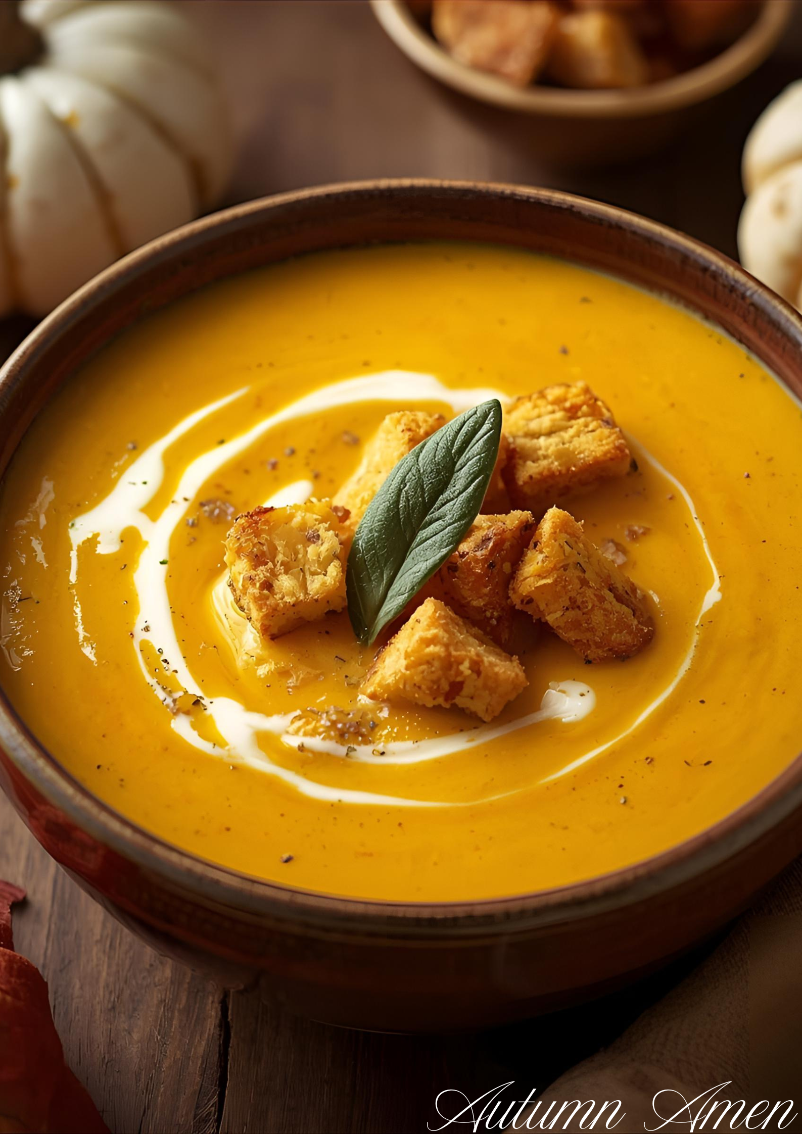 The garlic croutons add the perfect finishing touch golden, crispy cubes of bread tossed in olive oil and roasted with fragrant garlic. Together, they create a perfect balance: creamy meets crunchy, smooth meets toasty, and every bite feels like fall itself.